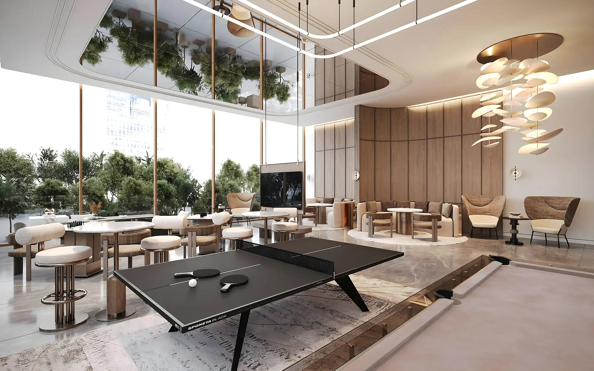 Les résidents bénéficient d’un éventail d’équipements exclusifs : piscine à débordement, jacuzzi, salle de sport en plein air, espaces de coworking, zones barbecue et brasero, spa homme/femme… Les rooftops et decks paysagers offrent des vues imprenables sur la skyline, dans un cadre propice à la détente et à la convivialité.