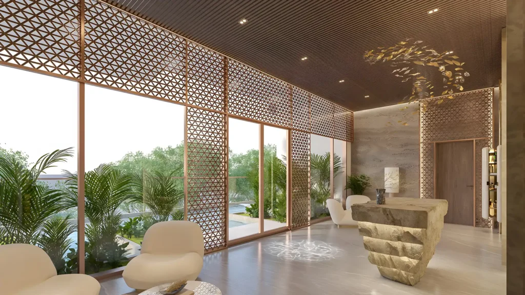À l’intérieur, les appartements dévoilent des espaces ouverts, baignés de lumière naturelle, où les tons chauds et les finitions haut de gamme créent une ambiance apaisante et sophistiquée. L’ensemble du projet repose sur les standards WELL Building et intègre une domotique intelligente : contrôle d’accès, parking sécurisé, spa privé, tout est conçu pour simplifier et enrichir le quotidien.